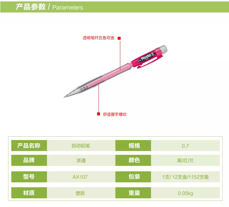 派通(Pentel) 自动铅笔(混色)AX107 0.7mm