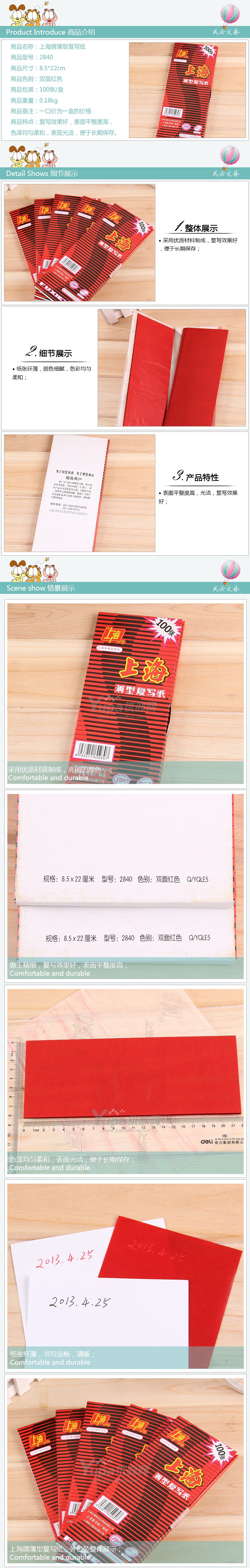 上海牌 红色复写纸 2840 8.5*22cm 100张/盒