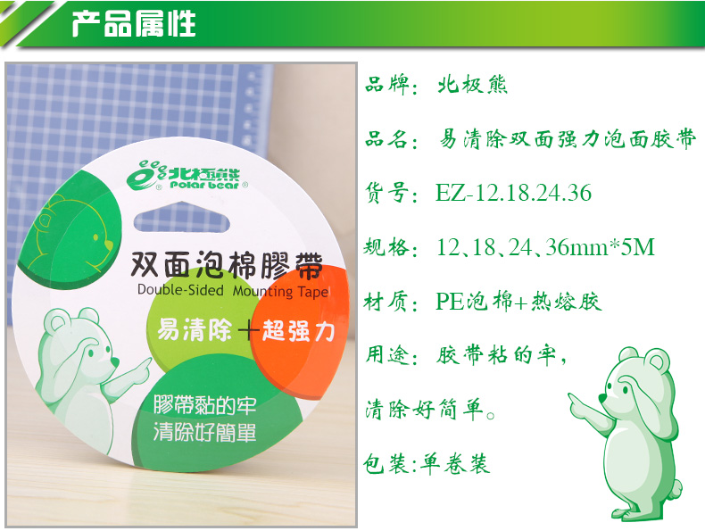 北极熊 双面无痕泡棉胶带 EZ-18 18mm*5m