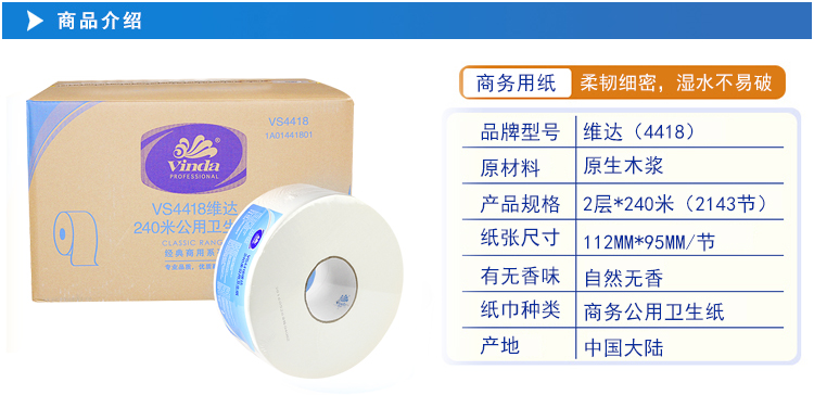 维达 大卷纸 S4418 240米*12卷